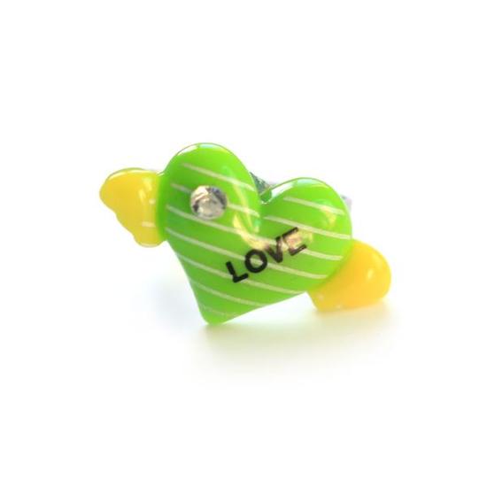 Green LOVE heart with wings adjustable ring
