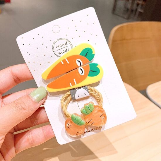 This 4-piece set of kids hair accessories includes 2 pieces of orange carrot hair clips and 2 pieces of carrot hair bobbles. Lovely hair accessories that are ideal for adding adorable cuteness to little girl's hair.