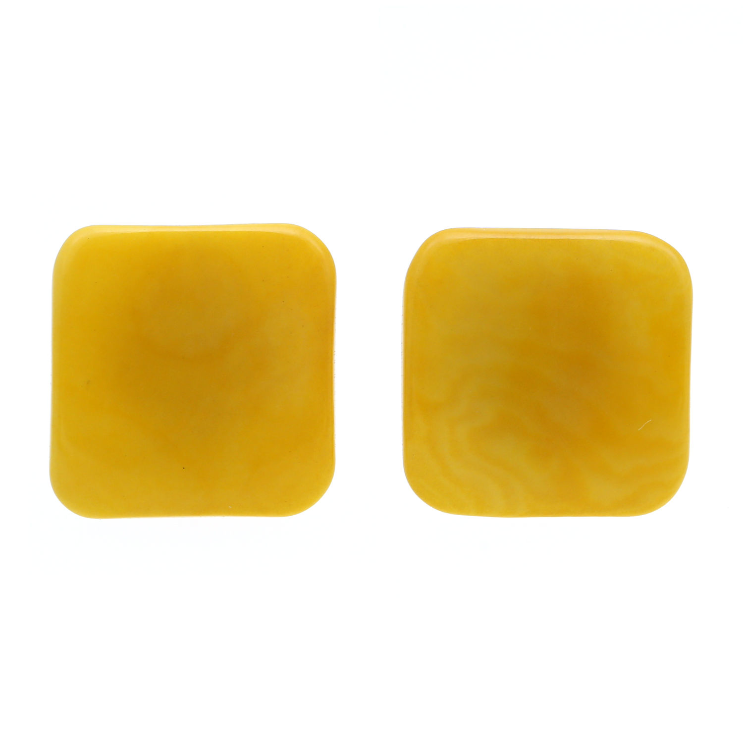 These gorgeous clip-on earrings are made from yellow dyed Tagua and come in the shape of squares. The squares measure approximately 20mm in size and have an average weight of ca. 4g.