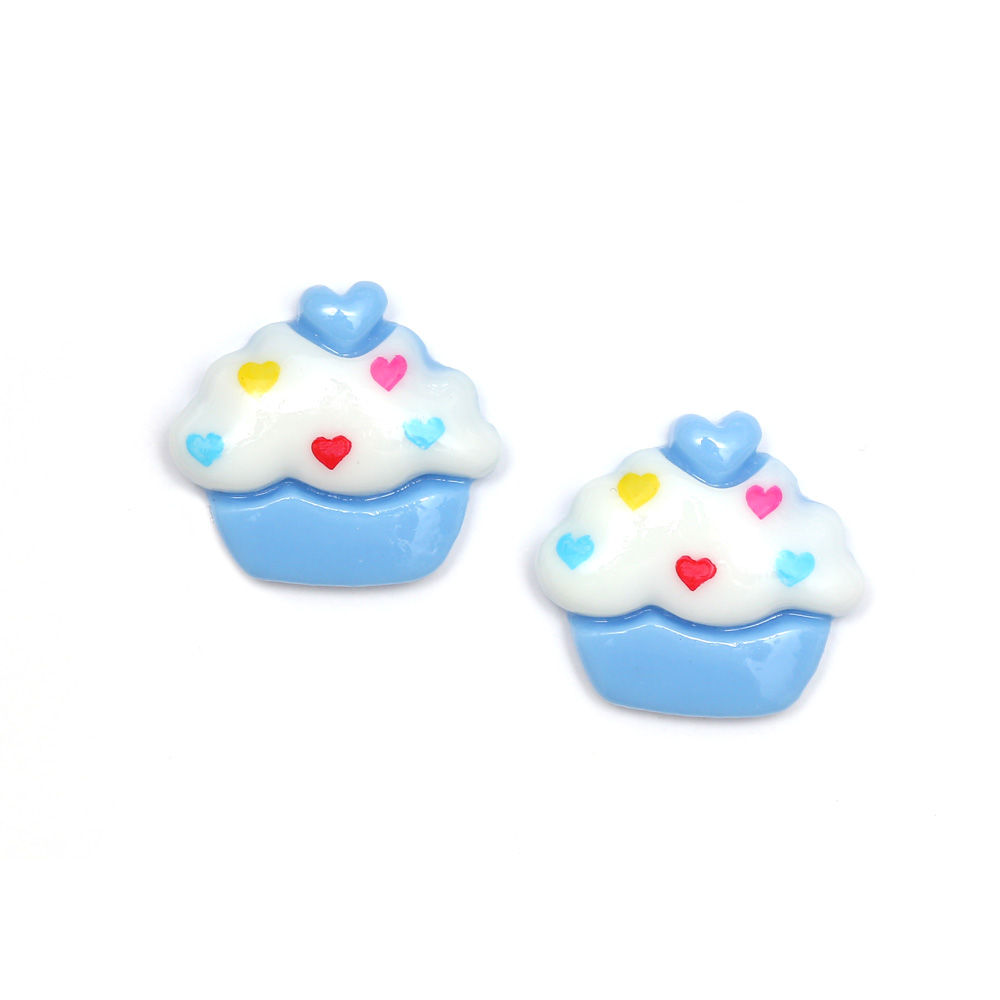 Blaue-weiße Muffins Kinderohrclips. Die Ohrclips werden einfach an das Ohrläppchen geclipst und es werden keine Ohrlöcher benötigt. Bestens geeignet für Kinder, die keine Ohrlöcher haben.