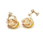 Ein Paar wunderschöner Ohrclips liegt bei diesem Exemplar vor. Das Knotendesign sorgt für eine interessante Abwechslung und der goldene Farbton für reizvolle Eleganz und die rosafarbenen, emaillierten Bänder auf den Knoten geben den nötigen Kontrast, um dieses Paar zu einem wahren Blickfang zu machen. Supertolle Ohrclips!