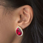 Klassisch und zeitlos, jedoch völlig modern sind diese verführerischen Ohrclips mit ihren roten Zirkoniakristallen in Birnenform. Umsäumt sind sie von weiteren klaren Zirkoniakristallen, was die Schönheit der großen Kristalle noch hervorhebt. Kurzum: Ein Paar Ohrclips, das Damenherzen höher schlagen lässt.
