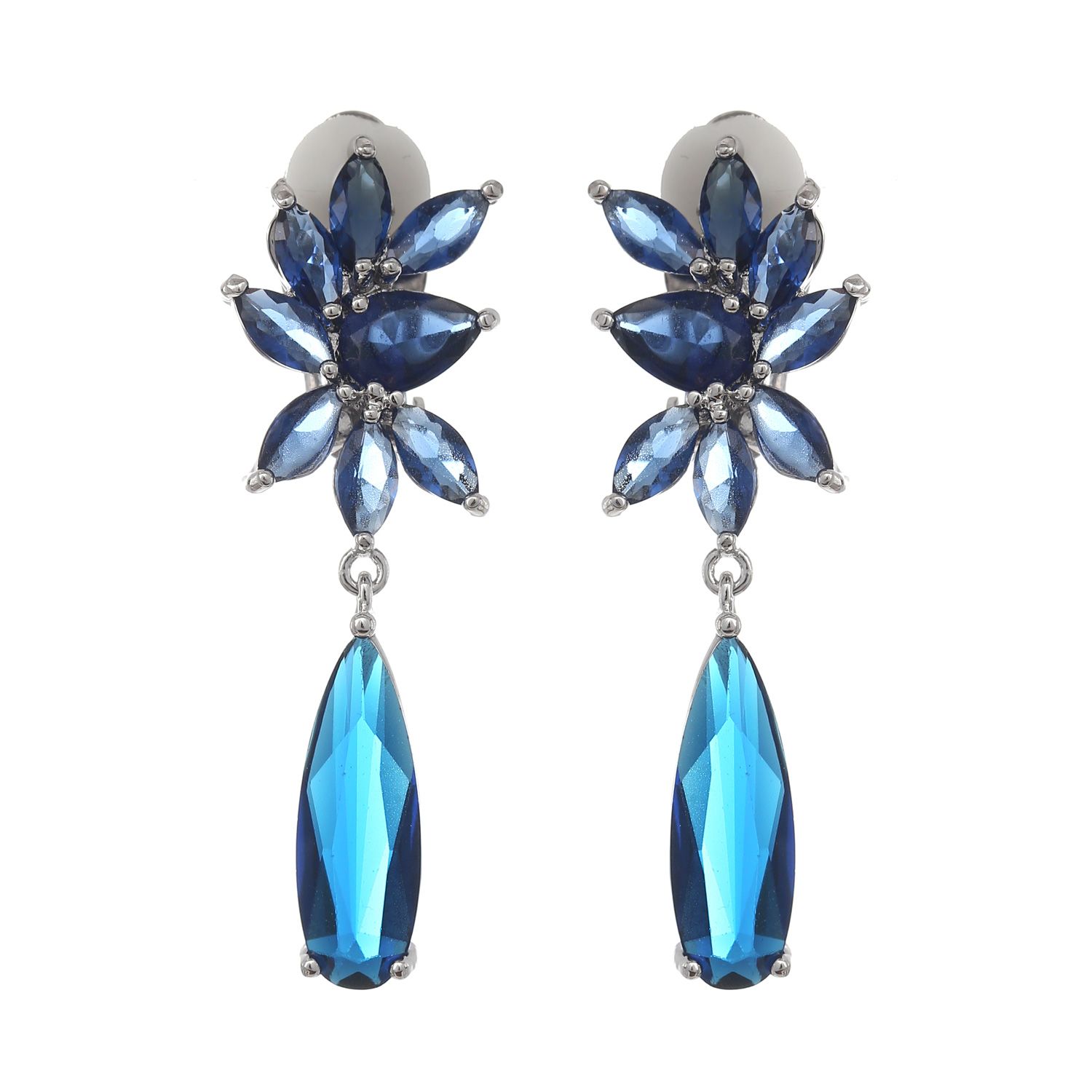 Auf der Suche nach eleganten und zeitlosen Ohrclips? Hier bist du fündig: Das exquisite Blumenmotiv ist mit blauen, markisförmigen Zirkoniakristallen modelliert, die von je einem frei baumelnden weiteren Kristall in Tropfenform begleitet ist. Dies unterstreicht den Charme dieser Ohrringe und du erhälst nicht nur ein super-tolles Aussehen, sondern es macht auch Spaß dieses Paar zur Schau zur stellen. Erwähnt sei auch noch die Weißvergoldung, um den hochqualitativen Zirkoniakristallen gerecht zu werden. Kurzum: Ein modisches Paar Ohrclips, bei dem man gar nicht erwarten kann es den Freunden vorzuführen. Und dabei muss man nicht einmal seinen Bankmanager beunruhigen.