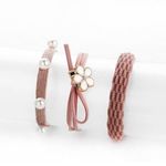 These lovely hair accessories include 3 pieces hair elastics in light brown colour decorated with flower and white round faux pearls. Perfect for kids, teen and women.