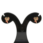 Christmas candy cane stick with gold-tone bow clip on earrings FREE Gift Box