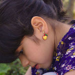 Cute enamel yellow peach fruit and crystal with gold-tone clips drop clip-on earrings. Lovely pair of clip on earrings that ideal for non-pierced ears. Perfect gift to give away or a treat for yourself. No piercing required to wear these earrings. Earrings size approx. 13 x 23 mm.