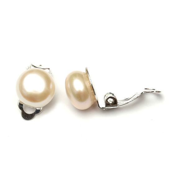 Weiße Perlen aus Süßwasserkultur auf versilberten Clips